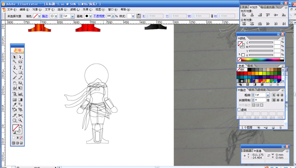 在Illustrator软件中新建空文件,吧实现扫描过的线稿置入,或者直接用这个软件打开扫描的线稿。本人以前习惯事先用横隔本和铅笔画草稿,主要是因为横隔本本身就有横线,这样好把握人物的比例。当然,如果是熟练的情况下也可以不用事先画线稿扫描或拍照到电脑里,也可以直接用软件画线稿。