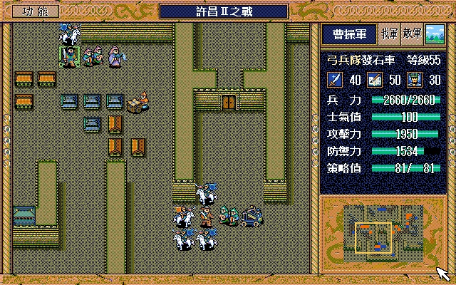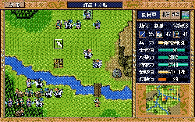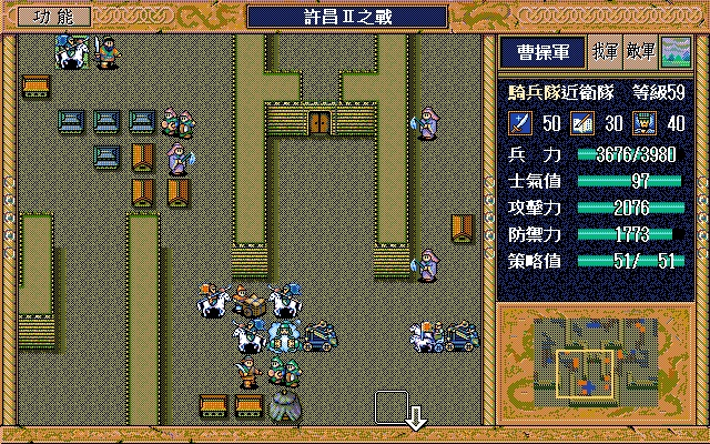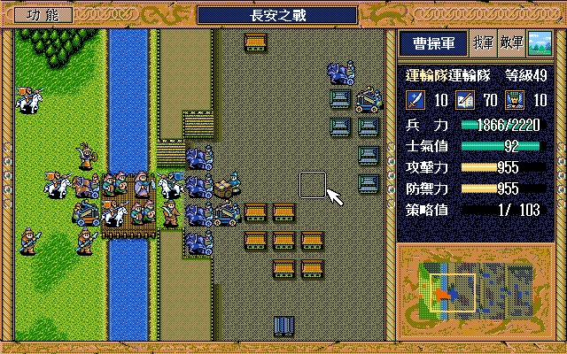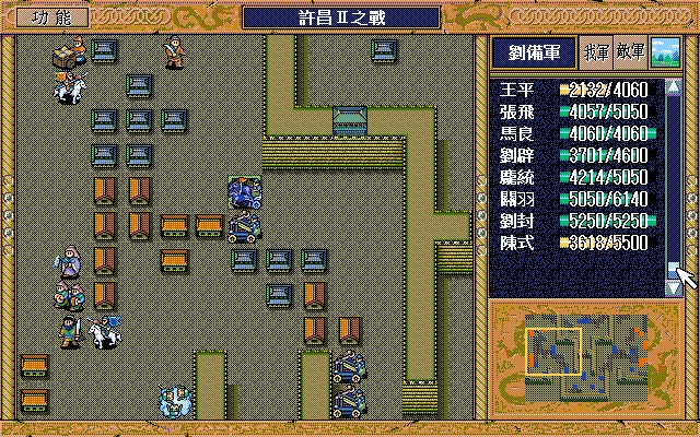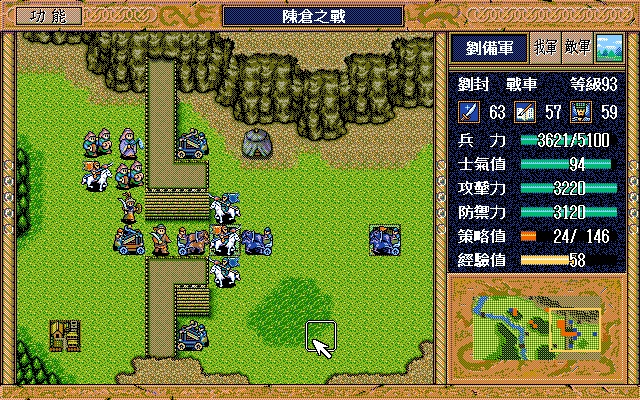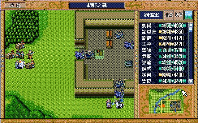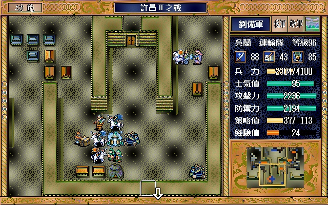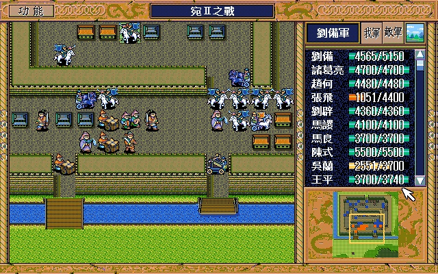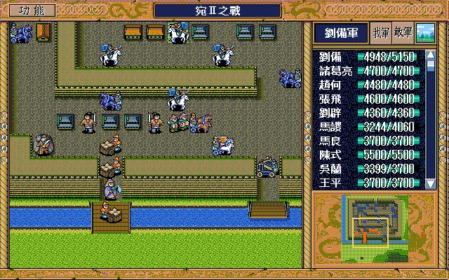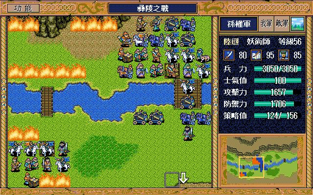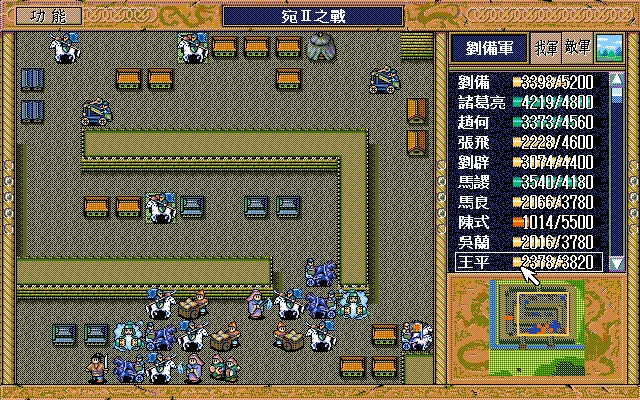 对这四个人再解释一次:刘辟其实很好养的,从瓦口开始前期反击杀伤并不大,后期往往可以让他单独行动,弄个村庄或鹿砦,放个敌骑(最好是名将)在里面就行了, 之所以要求后期追级的贼策略要高原因就在这里;剩下3个大策略者,陈式一个人有富余,按我的进度宛II以后3战都可以再上1个大策略;沙摩柯只需占4个位置就可以用襄阳青囊,所以只需再挤出1战即可;藩宫前面一直可以压级,按木之的成绩到雒I为47.93级,刨去2主将算47级,兖州之后只出了江陵、公安、雒I三战62回合,后面还有没有烧火机会要再算过,但即使现在就变战车也比关纯优了。请注意,关纯天然出成绩应计算到兖州为止,为40级左右,用补丁会高一些,游客丁是42级,再多就要挤占他人资源了。
