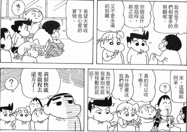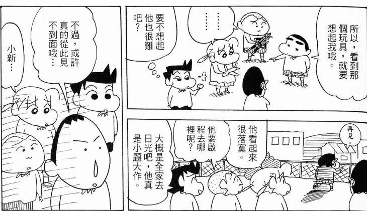 《蜡笔小新》一九九五年引进台湾,漫画书迄今已出版至四十九集,销量近七百万本,漫画改编的卡通、动画电影也大受欢迎。‘小新’更在不久前跃上手机,成为台湾‘手机漫画’的先锋。