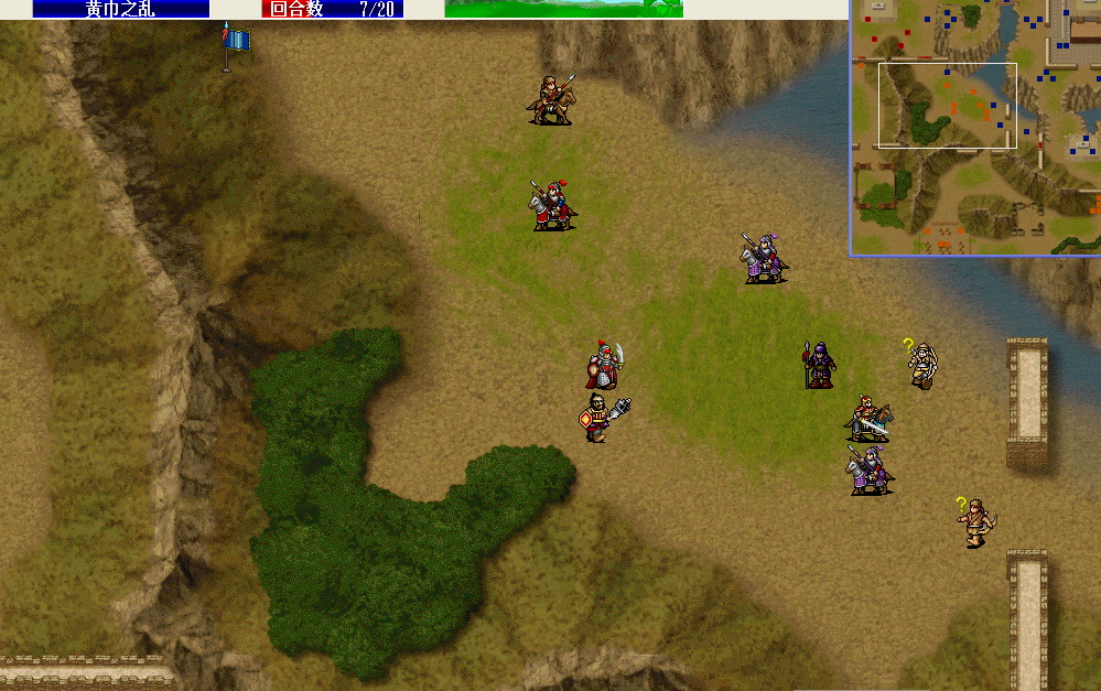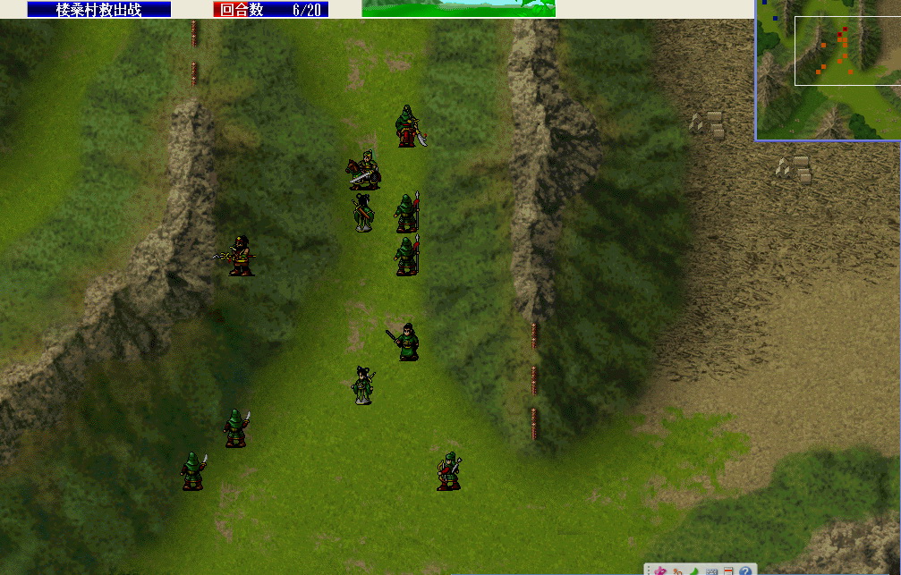 充分利用首轮可以存档,两百姓分别给关羽吃猛虎和疾风加攻加敏,女兵向左一格避开高升,关羽双击波才(敌方回合反击击退)。刘备霸气村长回归刘备,刘备双击严政,女兵将其击退,另一女兵向上卡位并取得药材。友军回合张飞击退管亥,敌方回合反击击退程远志。上方村庄解救成功,同时出现两个友军枪兵,这两人要好好利用,后面会起不小作用。