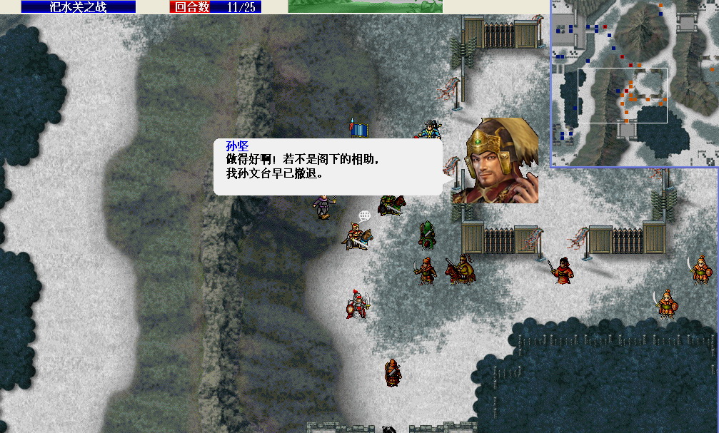 整个委托最关键的就是在战斗中sl出刘备对贼首的主动双击,因为战斗中不能存档,所以如果没sl出来,就重新再来。当然,这是针对贼首初始向下走的情况,刘备第一回合也向下攻击敌人,这里双击概率小,不用sl。接着三个回合,贼首在山路跑,刘备则从下面大路过桥,每回合使用霸气,其间触发与关羽对话。最后一个回合,刘备刚好能进攻到贼首,在这里sl双击吧,个人感觉应该不难,反正我没用多久就做到了。随后关羽跟上补击一招击退敌人。5回合过关,S评价。
