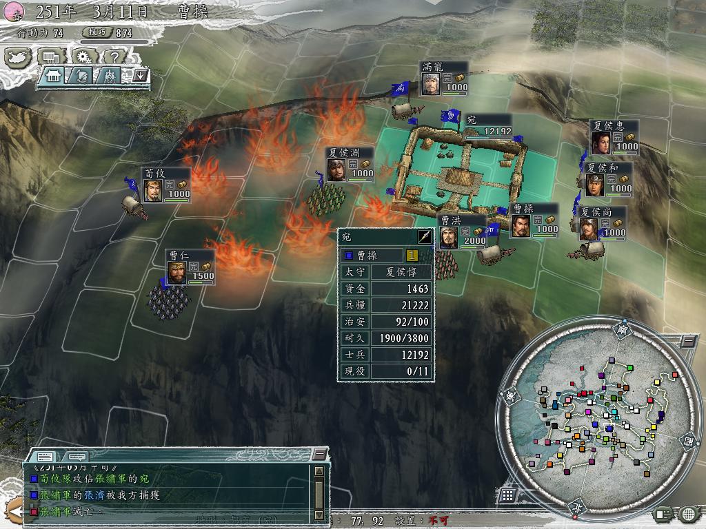 刘备方也应该改变一下战略了。 先取襄阳为抗拒曹操的资本。 你不往东方发展 我就跟你 在这开打 你没二张和 吕布 你可以守住哪个城市 你拿下宛城能有多大意义?