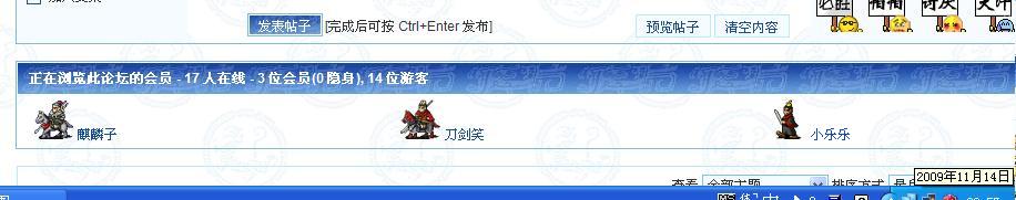 顺便说一下,11月14日,刀剑笑生日那天晚上,俺和刀剑笑、小乐乐都来到了衣食住行版区,俺用截屏拍下了这张特殊的生日合影,