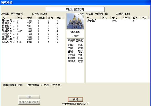 北方军团尼科洛部开始轮站拉扎,列奥那尔多部则以27000大军攻击匈牙利双都城之一的布达,与匈牙利军残存主力20000展开大战,最终以2000的损失歼灭敌军6000,取得