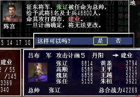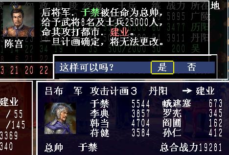 鲁肃治安于曲阿。鲁肃、姜维、关兴移动到广陵。邓艾移动到曲阿。封魏延征南将军。汇集广陵、吴、姑臧、酒泉、寿春、江陵、汝南、东治、襄阳、冀、南乡、阆中、白帝、江州到丹阳、始新、成都、长安、柴桑。张辽、高顺、王平、吕氏、严颜、魏延、李典、苻健、吴懿补满兵。移动酒泉诸将到广陵。移动魏延、王越、张任、徐晃、高顺、王平到丹阳。邓艾、王越、徐晃、张任、刘宠、蒋钦、黄盖练兵。移动吴懿、马超到曲阿。