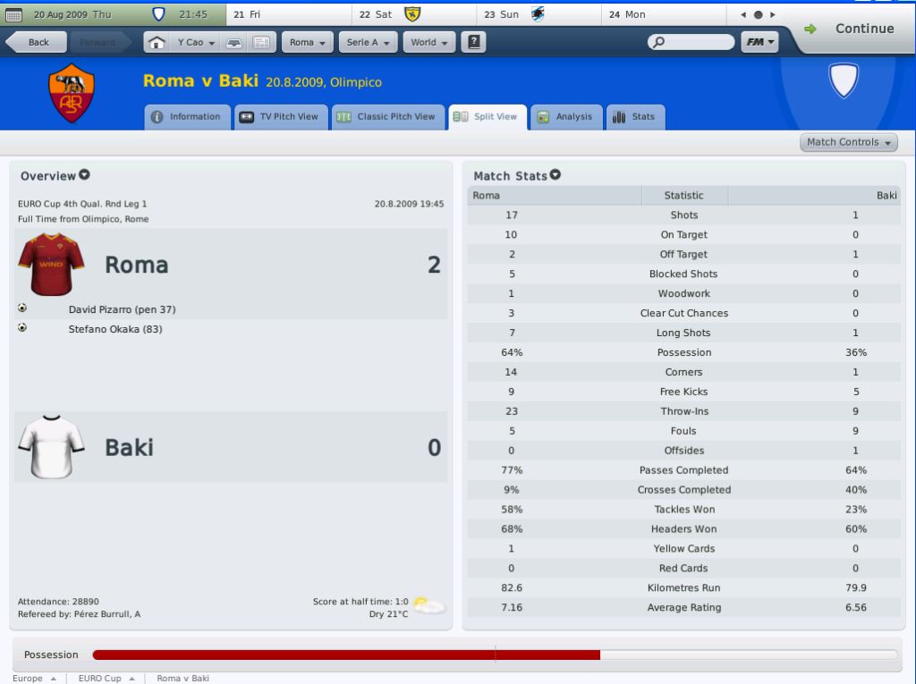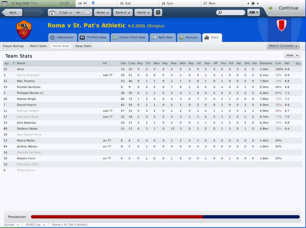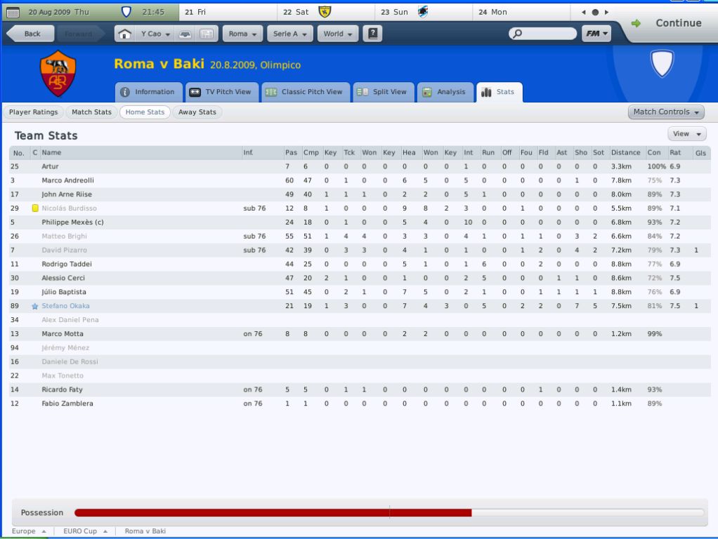 标题: 红狼, fm2010罗马战报