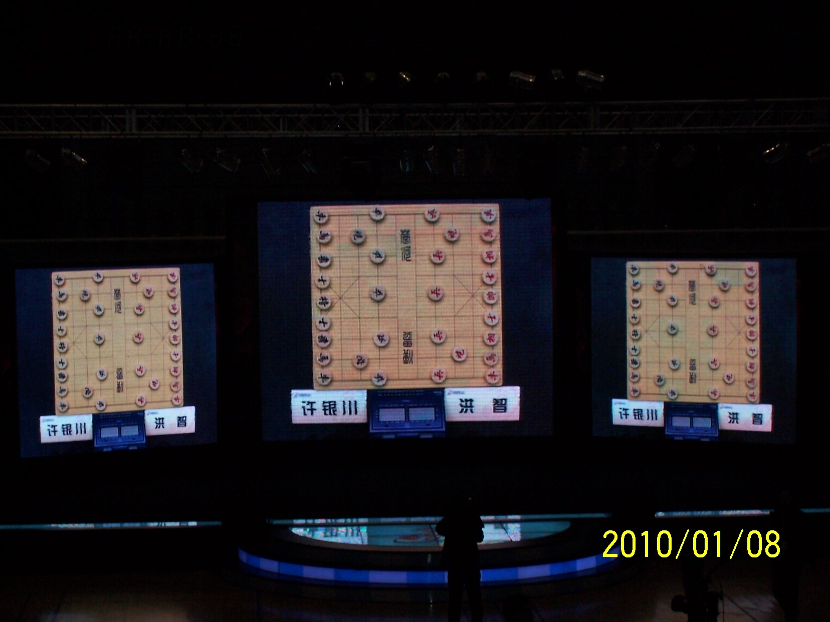 胡老师上台宣布结果并说明天赛前讲棋,开赛前主持人倒是说过不设现场讲棋,赛后为什么不讲呢?后来我想胡老师也需要研究一下。接着就是抽奖,抽二等奖时主持人请裁判长丁晓峰来抽,这位是不是以前那位安徽名手呢?