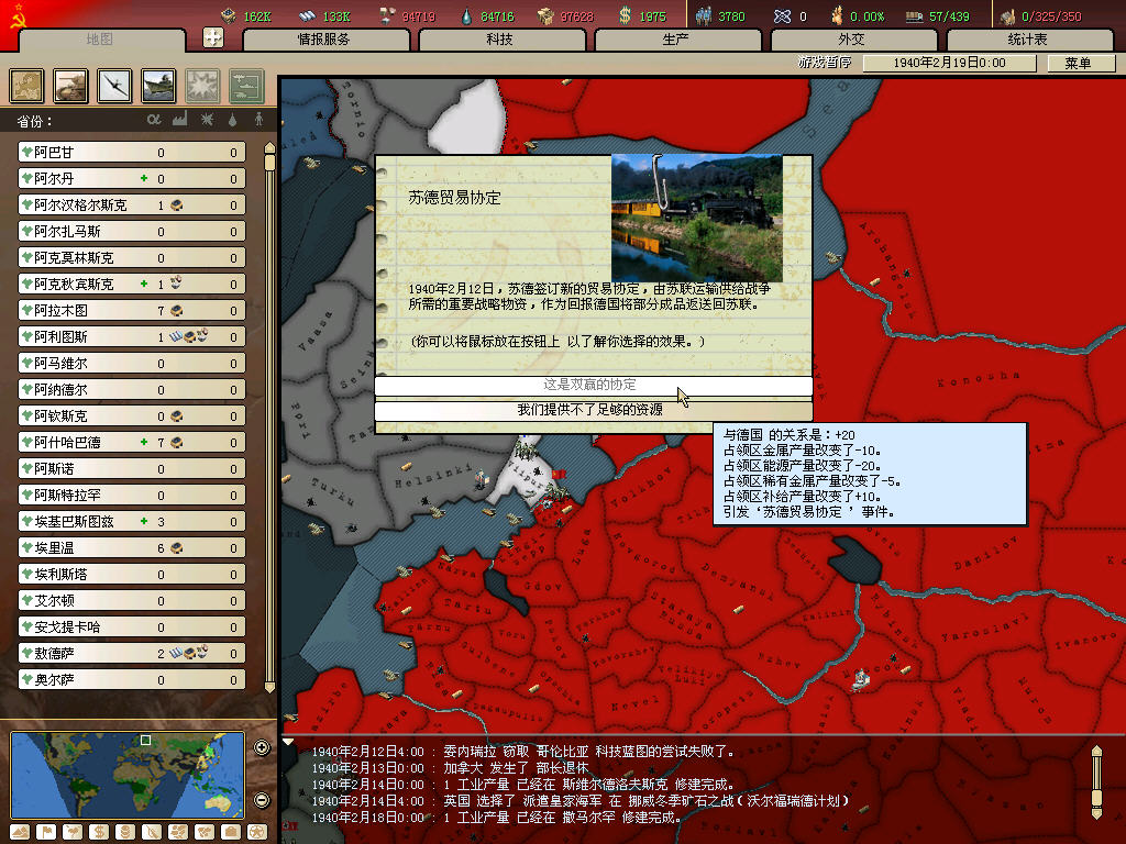 7月左右和伊朗条约到期,这个国家兵少质差,还不守边境险要地形,傀儡掉每天能上缴40多桶油,吞并则可以得到两个不错的科技组,可惜会稍微改变下历史