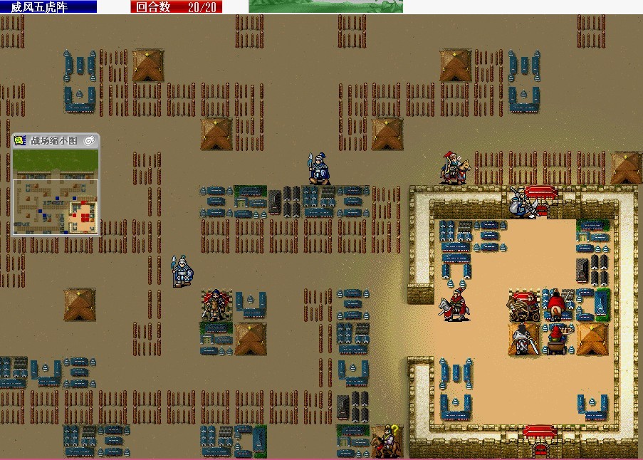 一开始,曹操灭中间靠右的兵,乐进杀右边的,两路突破,这样两骑兵就打不到乐进了(ps:防低啊)乐进杀完兵先别进,等曹操杀完后进来(走赵云那路),徐晃出来,四虎刘备出来,徐晃也往右走,下回合关羽黄忠会过来,两人接着往右走,曹操堵路,霸气后死不了的,走到左边那,引出于禁,这时乐进下来和张辽一起灭马超。就这样,曹操堵在左边,徐晃和于禁下去引张颌一起杀死东吴四人,不过要把四虎和刘备都引在左边,不要让他们从中间下来,之后五子良将会合一起杀后面的人,曹操继续肉盾,大局已定,时间充足就全灭,不过好象会拿不到白羽扇了。总之,打人合理运用兵种相克,节省时间,充分发挥曹操的X防