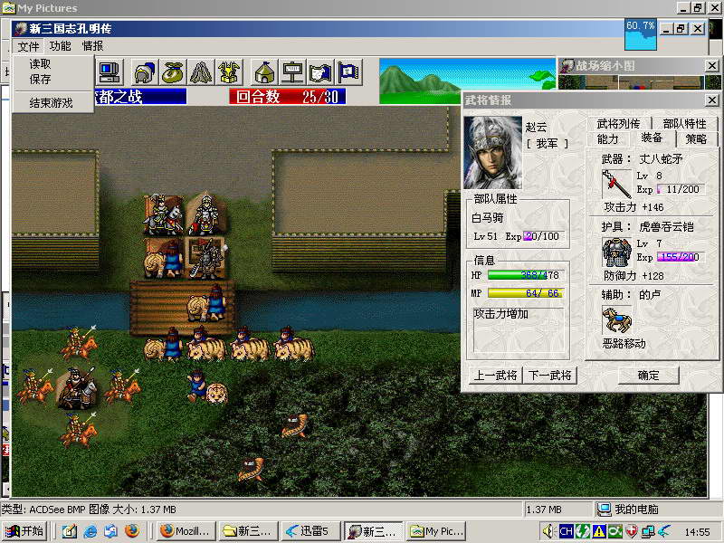 PS:动物能混住的就不杀,为小赵冲出去的时候减轻压力。要杀也得是复活后的第一会合这样也能争取到宝贵的4会合。本关魏延才23。为了让他升级中间杀了几个动物,否则过程应该更轻松!而装备也是很重要,小赵7J社毛一个点杀就能杀3个。过瘾~~不过这样升级太快了直接导致级差继续拉大,不知道这是不是作者的另一个阴谋捏
