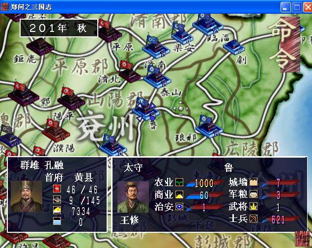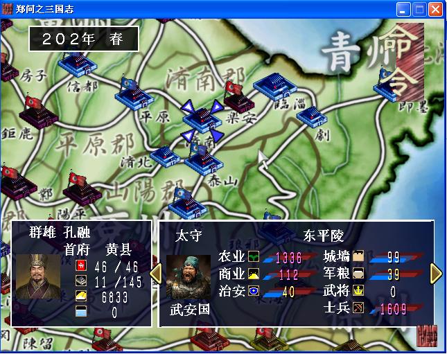 第二季度置换操纵孔融地盘就是4个城市了:即墨 临淄 剧 琅琊