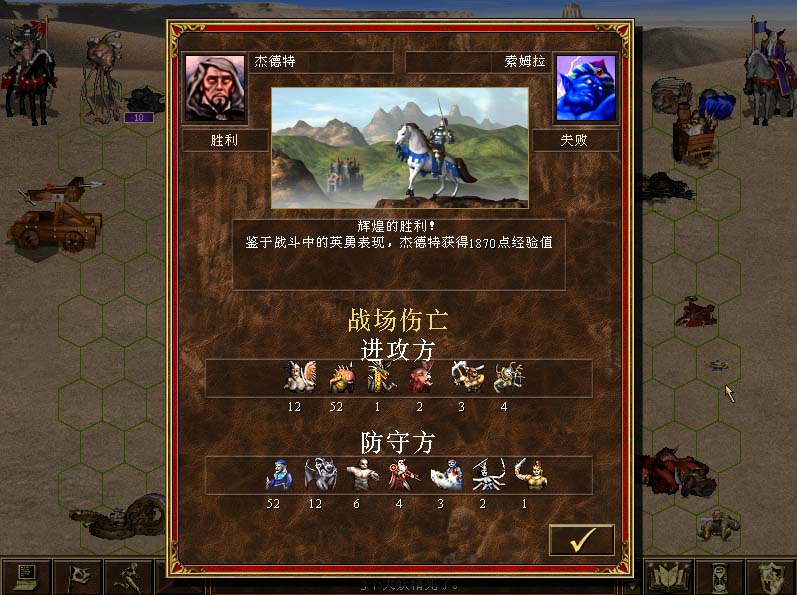 2、你只能从任意英雄中选择一个(不限种族,禁战役人),在一周兵中任选一座城的,不允许进入两座城,英雄自带兵可保留(如果能合到一起的话)。