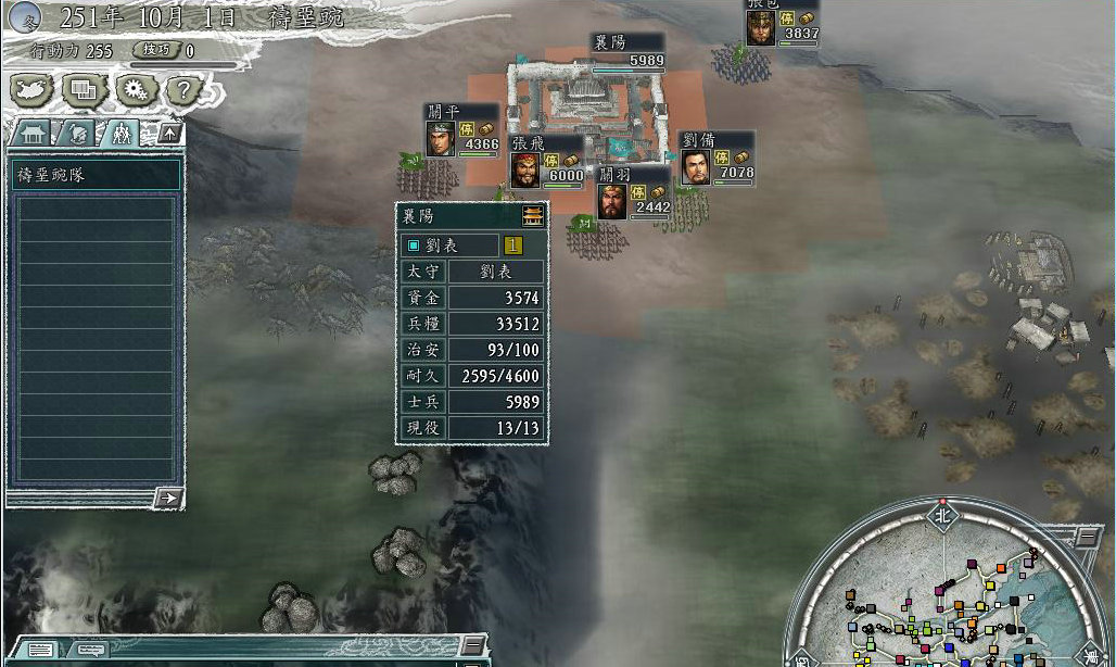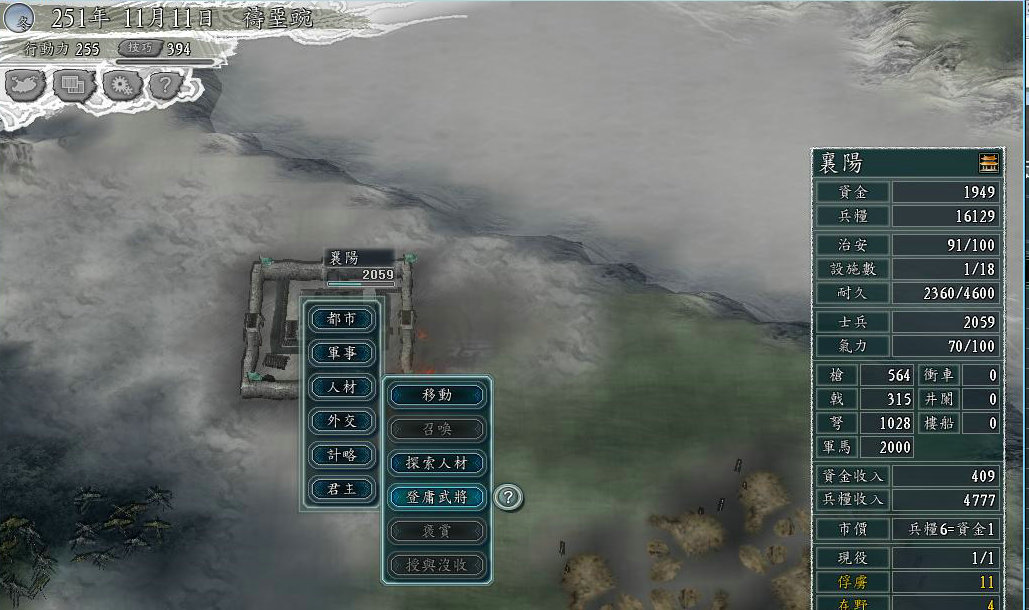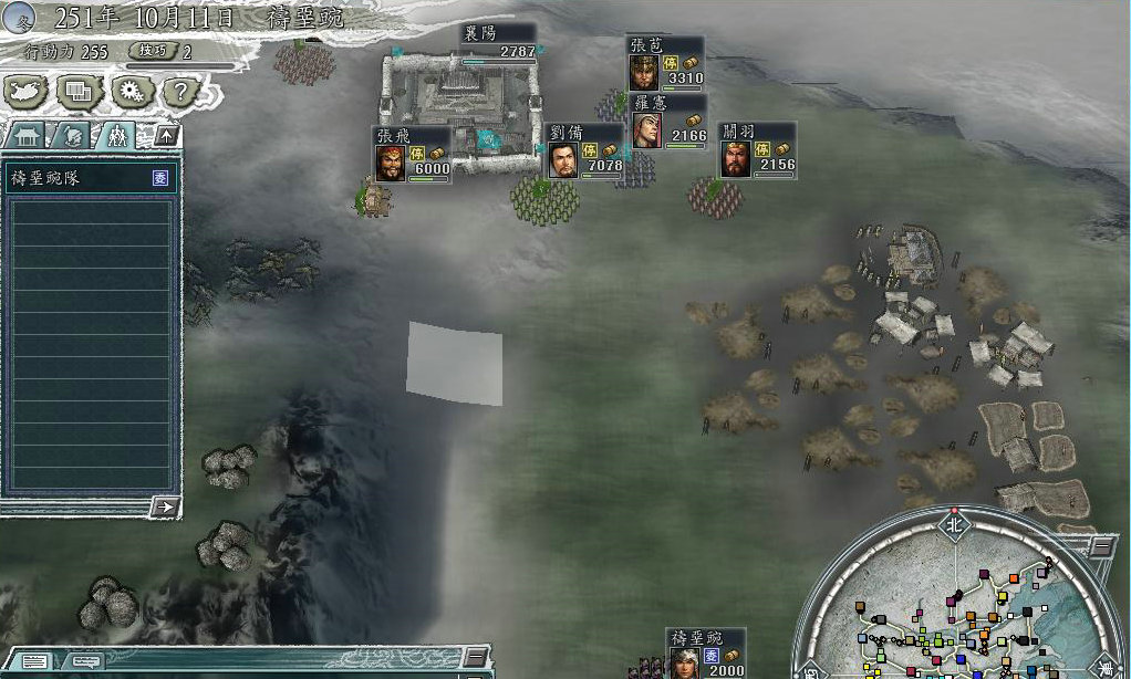 9月到11月期间,六一居士所要做的就是SL,以把握最好的进攻时机,以火球克城。我几次都是在251的11月1日攻克襄阳,刘表的人马大部分都可以收到。收人先从黄祖开始,只有黄祖最容易收,基本上登 2回合就收了,没超过3回合的。有了黄祖收刘表蔡氏蔡瑁蔡中蔡和(后两个容易登),还有张允蒯良蒯越就容易了,开局于是就如此打开。