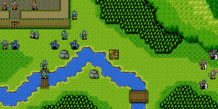 当时看运输队,军乐队太弱没用,骑兵不能进林子,很多战场我都是全体进林子然后把敌人非骑兵都引进林子消灭,最后利用斜角加远程消灭骑兵。