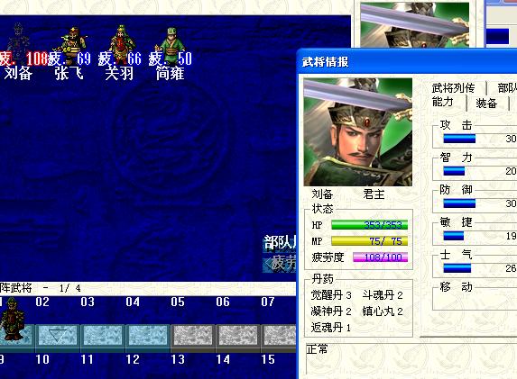 圖11是戰前準備,注意劉備的疲勞度是108,鎮心丸數量是2。