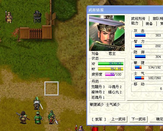 圖33,使用完畢了,劉備疲勞度恢復成50,可是鎮心丸數量仍是2。