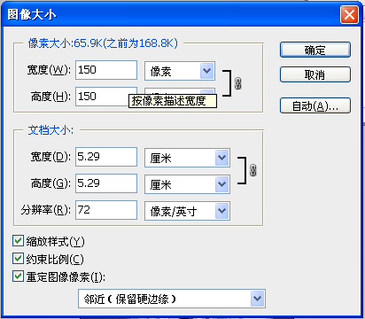 2.首先执行图像-图像大小,更改为150*150(三国志系列小头像都是按照这个比例截得,英杰传是120*120,具体看自己决定)。