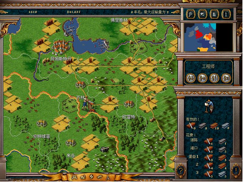 交易的不断增加,终于在积存够了一定数量的铜,铜和锡是制造铜才的必须原料,如今进口的铜原料达到所需数量了,那么扩增军队也势在必行,所以首先我就要增加农夫了,由于新大陆还没有糖和烟草输出,所以农夫数量还是有限的,先生产四个再说。