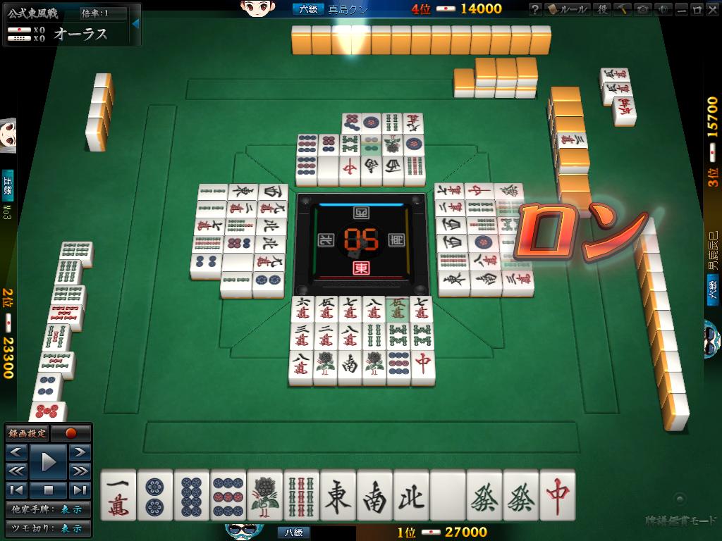 回到了学校(IP段属于联通),这回总算可以连了,成功登录,先练一把,主菜单最右边的按钮,点击,选择“CPU战”,进入人机对战。(不懂日麻规则的可以点击主菜单最右边按钮后选择第一个“麻雀讲座”)