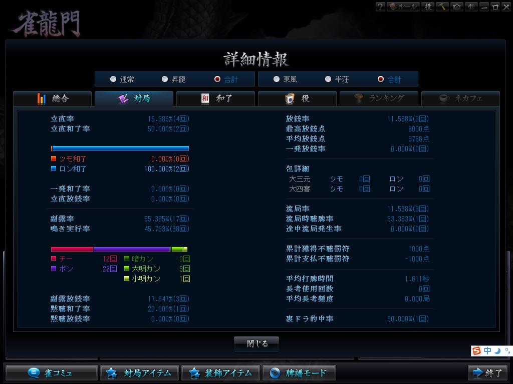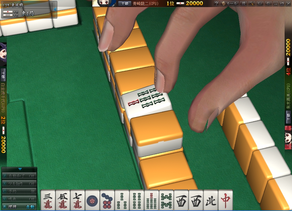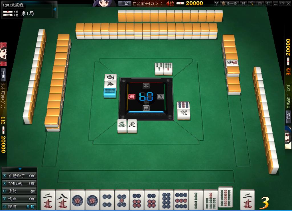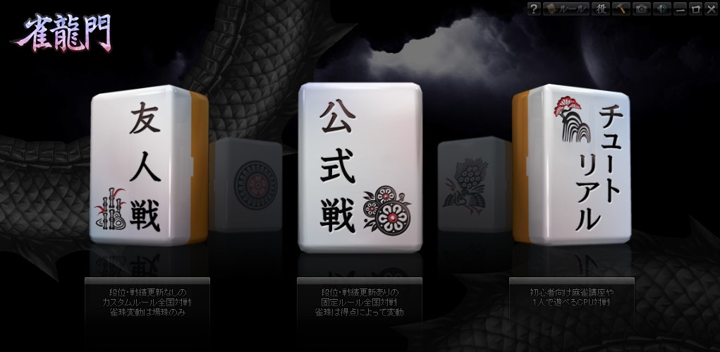 回到了学校(IP段属于联通),这回总算可以连了,成功登录,先练一把,主菜单最右边的按钮,点击,选择“CPU战”,进入人机对战。(不懂日麻规则的可以点击主菜单最右边按钮后选择第一个“麻雀讲座”)