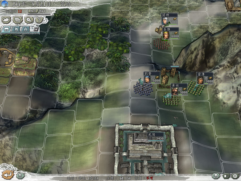 东面和南面之敌皆中我疑兵之计,不得前行。孟宗在撤回武陵的途中渐愧难当。受主公之命,两攻洞庭不下。前日在主公面夸海口拒李异兵,再次失败。无脸回城见我。忽闻探子报之刘备又派10000兵来犯。仍喜上眉梢,领兵向公安而去。