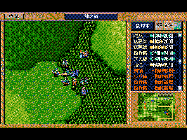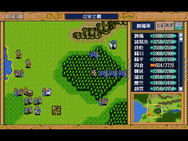 讓出左邊通道,引騎兵2沿路上移打周倉反擊