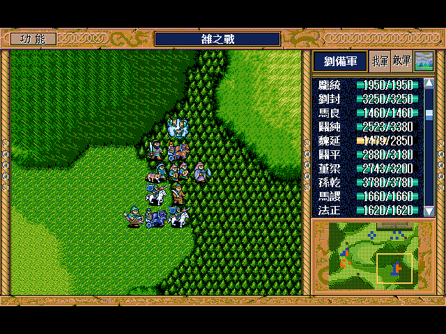 出場順序:劉備(英雄之劍、4焦熱書、3漩渦書),孔明,孫乾,關羽,關平,周倉(赤兔馬),魏延(5焦熱書、3漩渦書),藩宮(5焦熱書、3漩渦書),糜竺(5焦熱書、3漩渦書),
