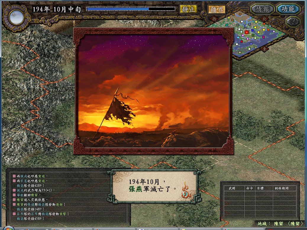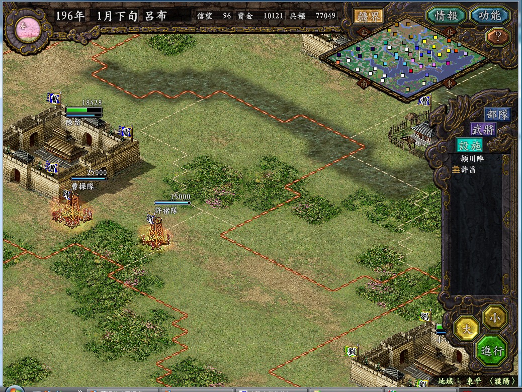 ----------------开始新游戏,官方史实剧本194 吕温候豪取兖州,势力吕布,开优化补丁,+50%强度,不S/L-------------------