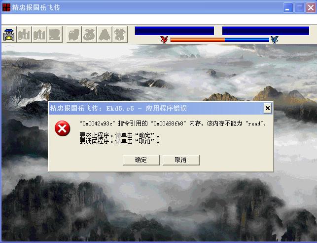 刚下了岳飞传怎么一进就退出来,说内存不能为READ。 选看片头曲直接这样了。不选的话进去看会对话也这样被强退了。各位大侠帮帮忙