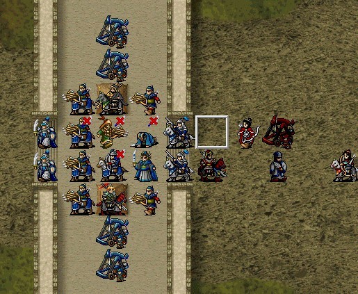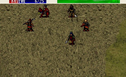 第三回合宗源灭道士及斜上角拿无名剑的勇士 周灵混乱追下来的勇士,美容输送宗源 敌军回合 贼兵砍到宗宝喘气,需要S/L :周灵不被混乱