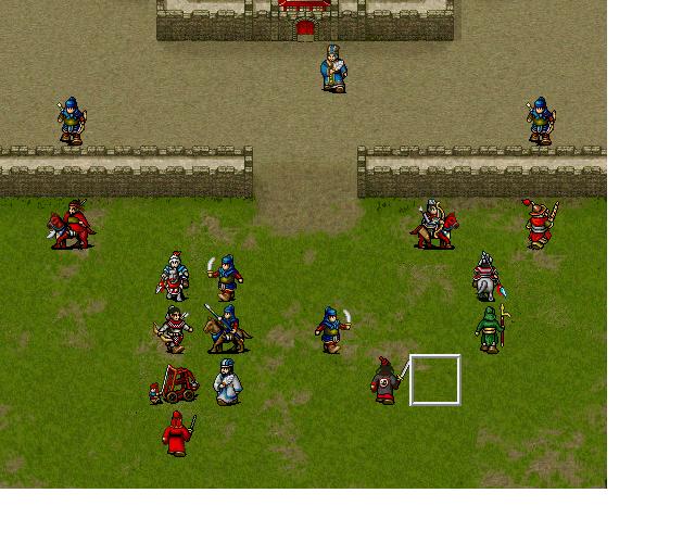 为了压级,需要引走田奇向左或者向右(牛皋,王贵方向),好让岳飞冲进校场,走位如图:基本达到分散敌军中路的目的,剩下一田奇稳坐中路 ,照理说丫的有攻击性策略 并且牛皋王贵皆在他的攻击范围,却是稳居不动,而到了再次回合丫的却开始走位了(为了实验 我试着我军皆不动并补血以达到复制上一回合状态)。