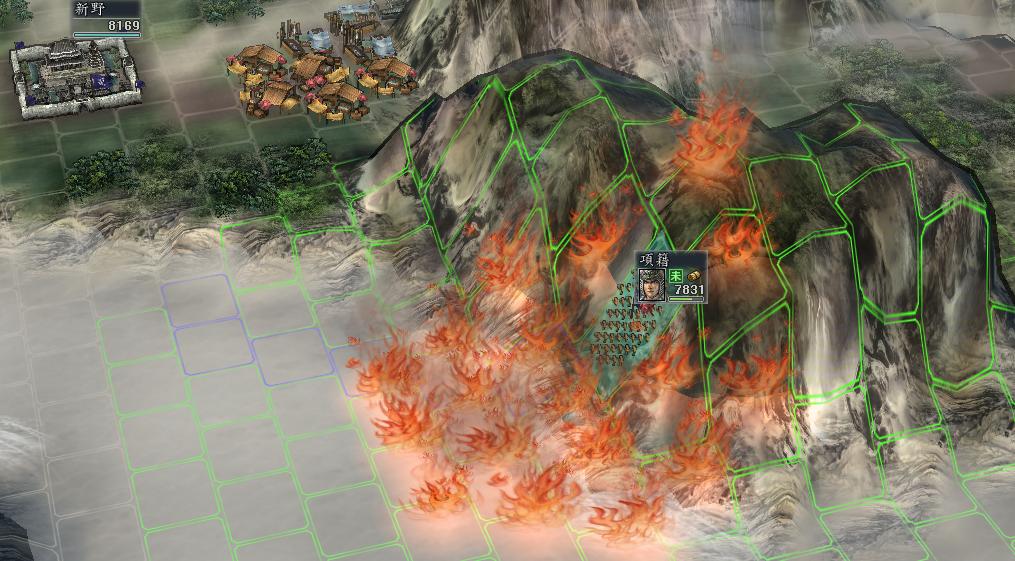 6. 有练成炸药(限玩家)或火神的部队通过着火格时, 该格自动灭火, 并且不受火伤
