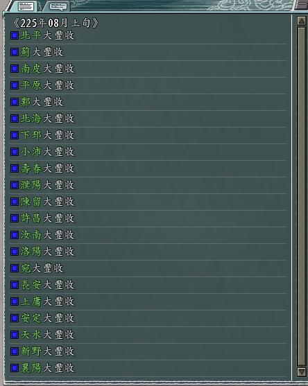 持有铜雀的势力全部城池都预定发生丰作(时间点为丰作消失的月份)