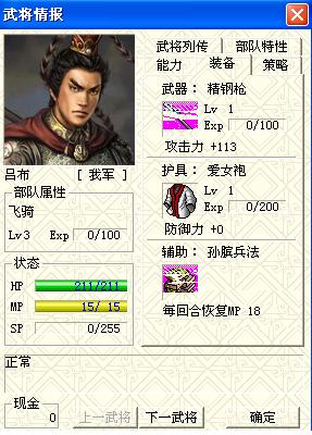 一、图1和图2是吕布和张辽战场显示的装备栏