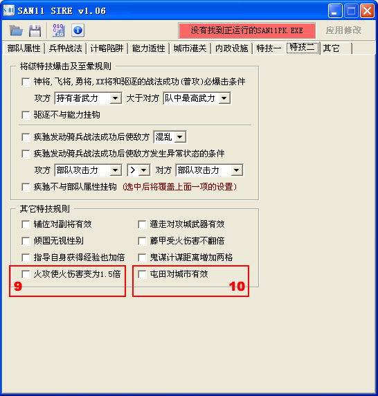 9. “火攻”特技加强为火伤害×1.5倍,但如与火神同队则不起作用(一废技变成半神技....)
