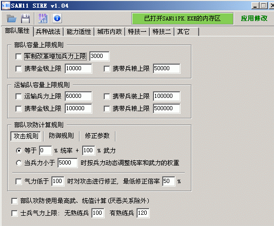 3. 加强火计成功率与智力的影响,本来智力1对空地放火成功率65% 智力100时成功率95%,比例参数=0.3,