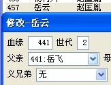 但现在,我把所有武将的血缘都编为0,然后把岳飞与岳云编回游戏初始时的数据。不过两人皆是直呼其名……