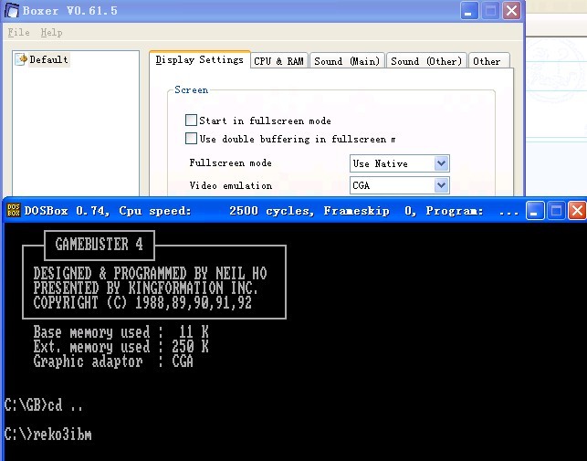 4。点C盘里的DOSBOXER运行(建个桌面快捷方式即可),在DOSBOXER菜单里选择,显示为CGA模式,CPU的哪个如果你的机器CPU配置为1。6G以上,就可以输入5000转即可。其他设置不用动,别选择满屏模式。点运行DOSBOXER,蹦出两个黑窗口,一个别管它,最小化即可,但不能关。