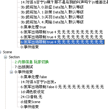 - 回楼上, 原版曹操传剧本里没有连用"我军出场限制" 3次, 而且STAR175的5.6版引擎只支持连用三次指令, 您要自行修改剧本.