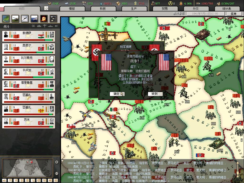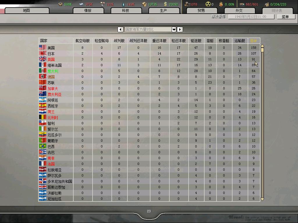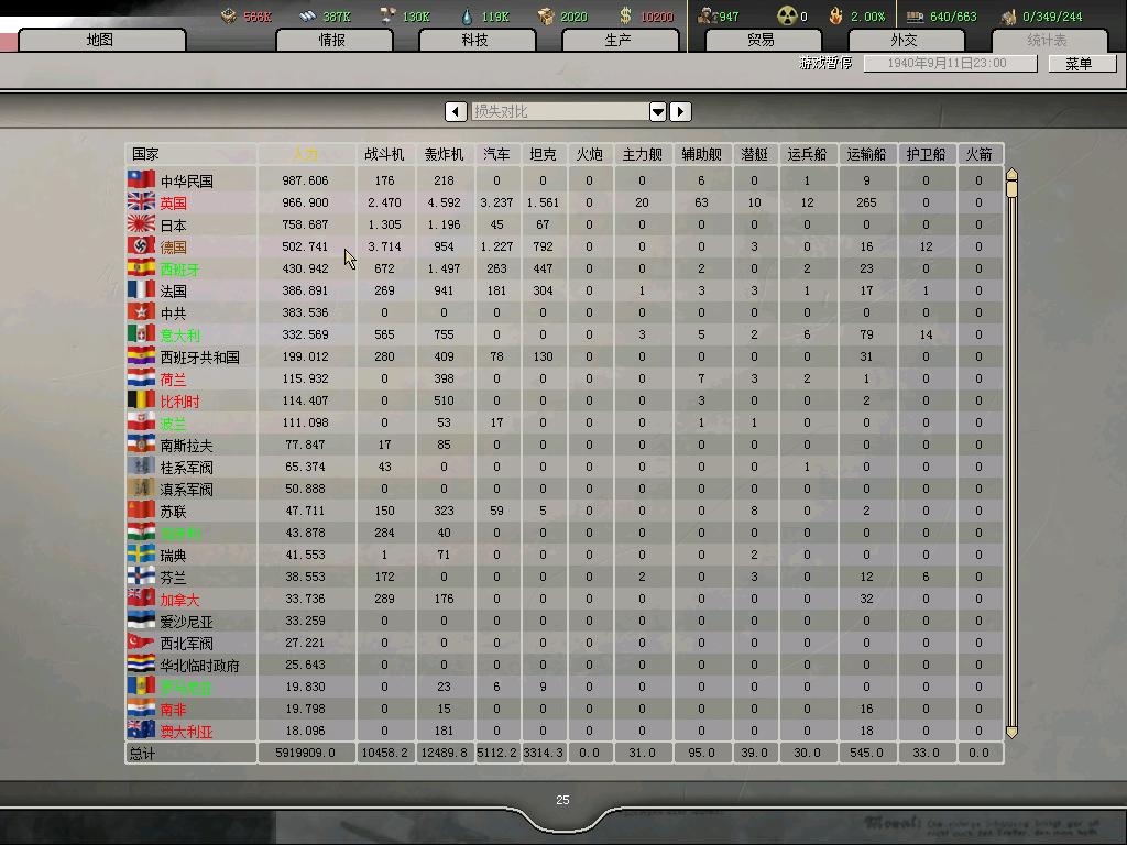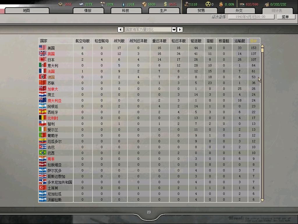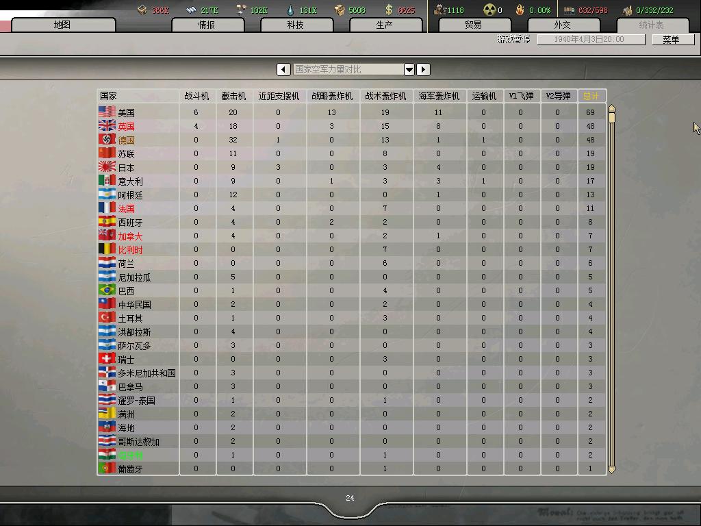 照例是国情咨文时间,陆军实力对比,不算多也不算太少,打法国够了,但是看着悲剧的4个伞兵师而只有1个运输机,我内牛满面