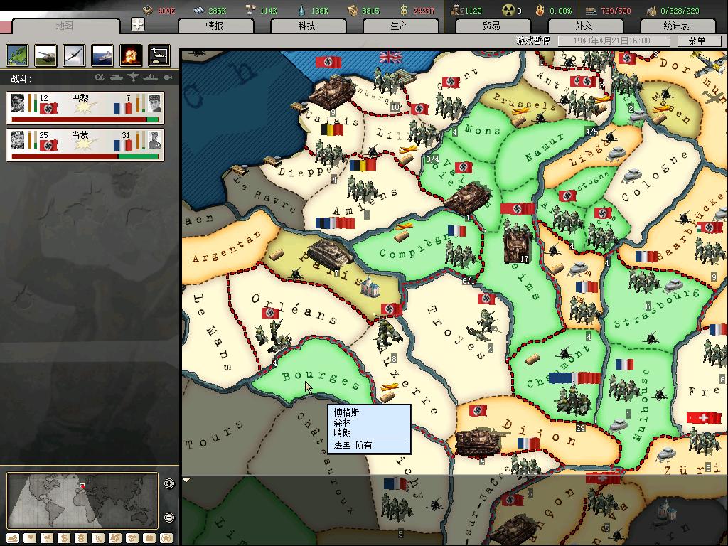 主要进军路线,敦刻尔克地区主要是20个师包围,控制出维系的时间好消不满,巴黎计划有12个步兵师参与进攻,共计50余师第戎和贝桑松,因为对事件送运输机估计严重错误,导致我现在只有一个伞兵师能投入战斗,计划用于抢占贝桑松,防止马奇诺防线的法军外逃