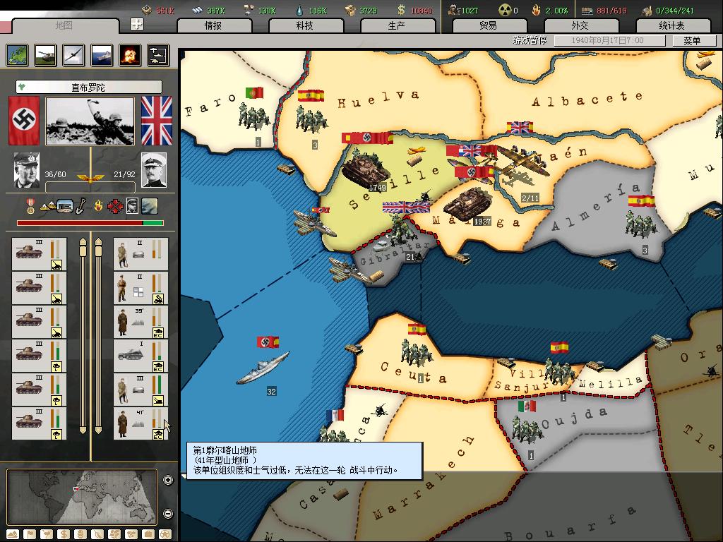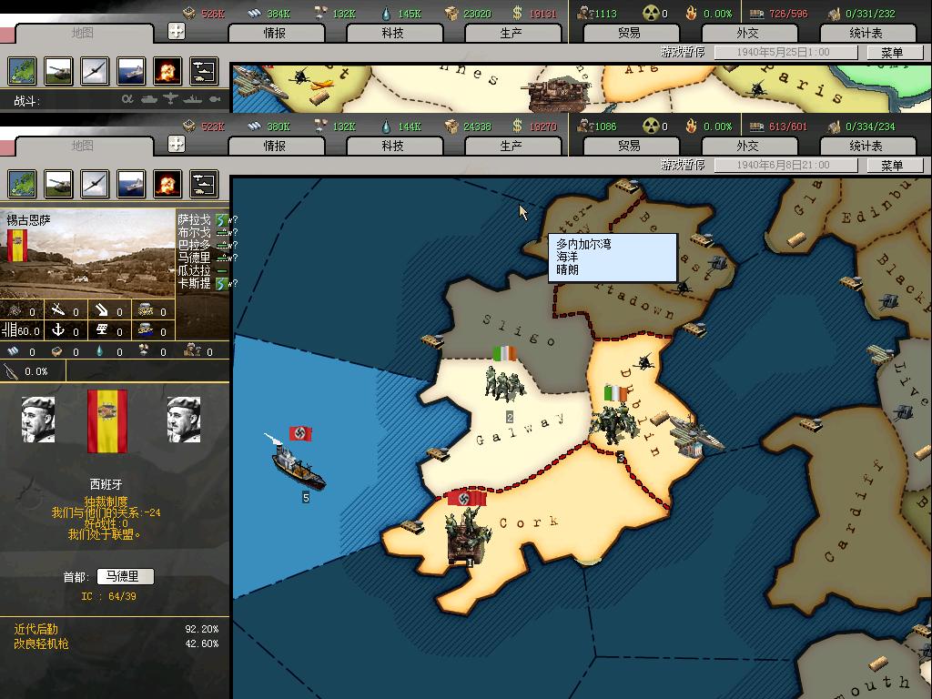 。小弟们都没有成长,匈牙利空有32个师却还是18型,不过有蓝图的3洞科技相当于6洞,成长很快的。将来必是帝国的栋梁。至于意大利,有多远滚多远吧