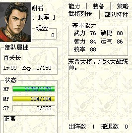 STAR 5.6发布的文件中 102号人物就是一个特别人物。当他作为我方武将加入时,过关后在使用连续出战就会提升所有出战人物的基本能力。且以后所有连续战役人物基本能力都会增加。我的102号人物是夏侯惇跟着曹操出来打官渡,于是这个特殊的102号人物就出现了。另外发现成长数值和前关杀敌数有关,智力60的人到下一关可以升到90。