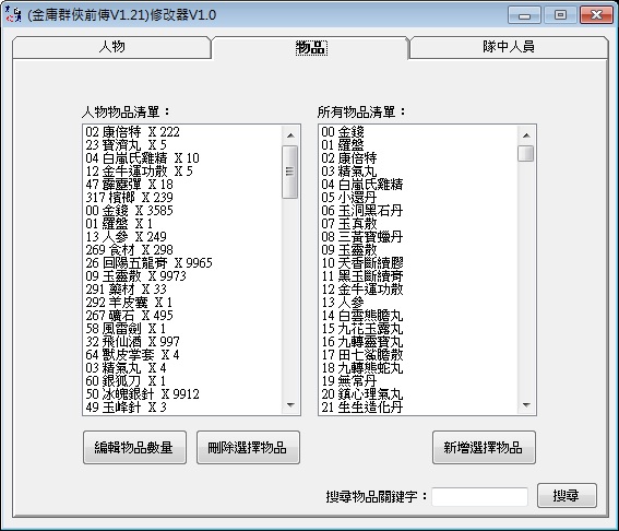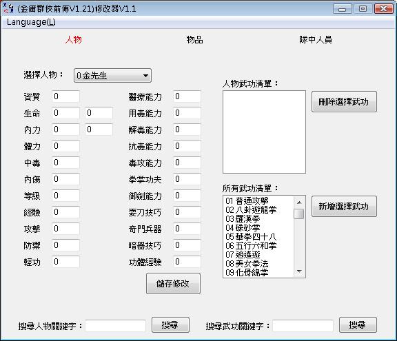 标题: (金庸群俠前傳V1.21修改器)V1.1版(於2010-6-16 17:12更新)