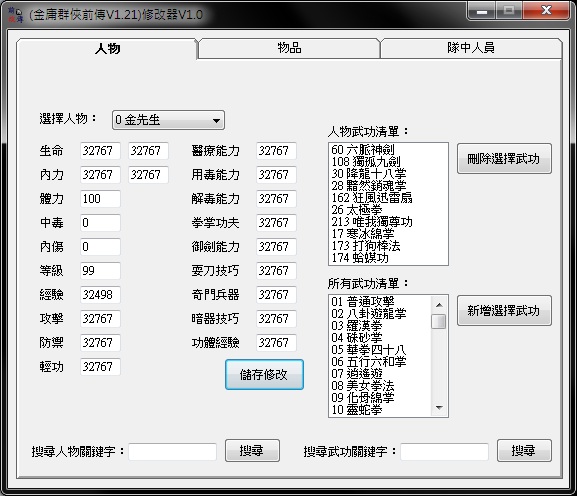 (金庸群俠前傳V1.21修改器)V1.1版(於2010-6-16 17:12更新