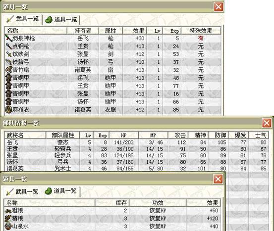 7.第九回合:汤怀给岳飞开路,岳飞双击(敏44VS56不需要太多S/L)打吉青,王贵进村,张显暴击,诸葛亮补法(图9)