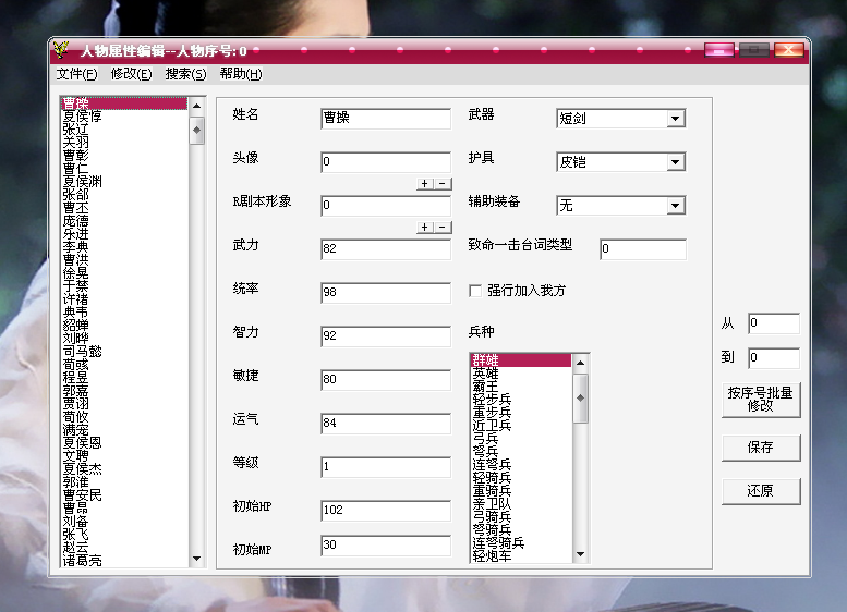 回复咋没的发图的附件啊?不会发啊!我用一个叫曹操传Data文件修改器(v1.2made by博雅张生)打开data.e5,显示的是file not found。用曹操传修改器v1.1made by叶落秋寒就可以打开。。