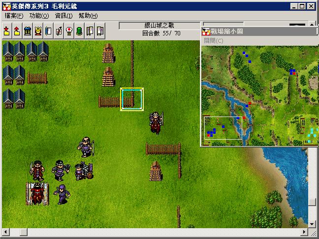 2:开局其他人向下,6回合的时候到达山口.第7回合,第8回合,继续向下,其中世鬼要连用两次快步,堵住敌军向城内进军的路线.到16回合左右第一批敌军全部消灭,并引出左上的敌援军.然后福原独自向左上行走对付敌援军(重要,如福原把他们引下来,暂时经验会多些,但是运输道具的路线会被堵塞,恢复酒会不够,也不能保证福原能攻击到最后一回合),其他人进军中间的小岛,岛上上方鹿砦的弓兵留着,让口羽反击到结束.剩余的人直奔敌主营.