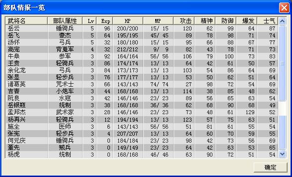 根据之前各战选择培养出理论值武力88统率84智力80敏捷100运气66的岳银瓶