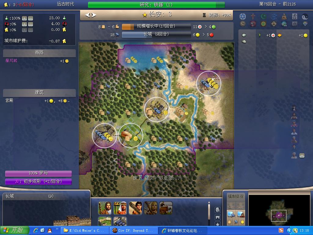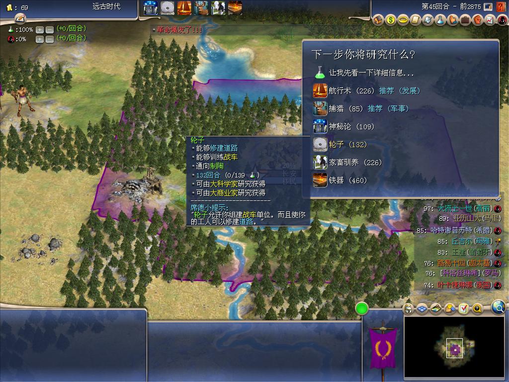 铁器完成,失望大于希望,开始从头老老实实研究王道的理论路线,不过罗马还好了,只需要在实践类科技上研究2个,如果选的是中国。。那就还要在这条不归路上再走2步,到那时就真的不能回头了哇